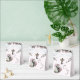 El diseño en la parte superior de la solapa presenta un fondo rosa pálido a la imagen realista de rosas rosadas e hidrangeas blancas rodeando la imagen de un crucifijo de plata. Cuando se abre la solapa, se revela tu mensaje de gratitud, que se muestra en un elegante tipo de letra plateado. El diseño frontal muestra el mismo fondo rosa pálido que el de un bonito ramo. Las iniciales de Bride y Groom se muestran a la izquierda en un elegante tipo de letra Nuptial de color plateado. En la parte posterior se muestra el texto como un arco sobre el símbolo de una cruz y los anillos unidos. Diseñado para coordinar con la "Suite Boda Católica Floral Rosa y Blanca".