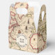 Esta adorable caja de favores de boda presenta un antiguo "mapa de aventuras" del mundo de los años 20, que destaca los lugares de los viajes y exploraciones de la historia y la literatura. Es perfecto para una pareja que ama los viajes. Utilícelo para empaquetar tus favores de boda, o llene de tentempiés para que tus invitados reciban cuando se registren en su hotel. Personalice el "sello de pasaporte" en la parte delantera con sus nombres y fecha.