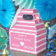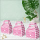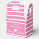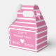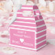 Perfectamente divertido caja de favores de matrimonio rayado rosa y blanco que es personalizable con el nombre de novia y novio y está listo para un aperitivo de medianoche