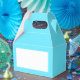 Cajas de favor azules hielo con un espacio en blanco para escribir cualquier nombre o mensaje.