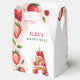 ¡Haz que tu fiesta sea más especial con esta adorable caja de favores que incluye un diseño de pasteles con la letra "A" con temática de fresa! El ilustracion acuático exhibe una carta "A" en forma de tarta con fresas frescas, heladas rosas y una vela de cumpleaños, enmarcada por un elegante borde de fresa. Perfecto para llenar de caramelos, pequeños regalos o dulces a tus huéspedes. ¡Un adorable y festivo añadido a una fiesta de cumpleaños de fresa!