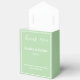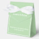 Esta caja de favor de fiesta se muestra en un elegante color salvia.