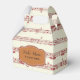 Las notas musicales rojas le dan un favor a la novia y al novio en el día de su boda. "Haz música juntos" buenos deseos para la pareja feliz y sus invitados.