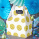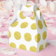 Regalos de fiestas de la caja de favores relacionados con el tema del tenis con un patrón de pelotas amarillas de tenis.