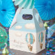 Un oso pequeño sube y baja en su globo de aire caliente. Cuadros caprichosos pintados a mano por mí. Esta es una caja de favores para múltiples ocasiones como alojar una ducha de bebé virtual o como un regalo decorativo en tu ducha de bebé con temática de oso.