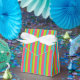 Luminosas rayas color turquesa, lima y rosa decoran este marco festivo. Esta caja fuerte es ideal para una ducha de novia, una ducha de bebé, una fiesta de cumpleaños, una recepción...... El diseño es de arte original.