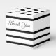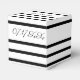 Caja de invitados de la boda de diseño en una impresión de franjas en blanco y negro en negrita, los colores se pueden cambiar a cualquier color que coordine con el tema especial del evento. El texto de delante, atrás y superior se puede personalizar a cualquier mensaje.