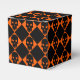 Patrón repitiendo vibrante de diamantes negros y naranjas con calaveras negras espeluznantes. Genial para una fiesta de Halloween.