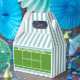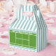 Creativos regalos de fiesta de caja de favores con temática de tenis con pista de tenis y rayas azules. Edite texto para personalizar fácil para el cumpleaños del tenis y otros eventos deportivos.