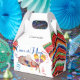 Celebra Cinco de Mayo con estas cajas de colores. Con un fondo blanco, el diseño frontal y posterior tiene un sombrero mexicano y un par de maracas, rodeadas de vigas coloridas y un texto que dice "Cinco de Mayo". Los lados están cubiertos de un sarape de color arcoiris.