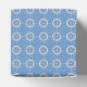 El timón del barco blanco se replica en varias filas, cubriendo la caja, sobre un fondo azul medio