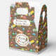 Caja de favores de patrón de carreteras y vehículos. Adecuado para el día de cumpleaños del niño u otras celebraciones relacionadas con los niños. Puedes cambiar los textos" "Fiesta de cumpleaños número 6 de Mathew" a tu propia elección.
