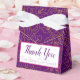 Gracias a sus invitados por unirse a las celebraciones de su boda con cajas de favores coordinadas, con efecto de hoja de oro impreso en el delicado patrón. Cambie los colores de fondo y texto para que coincidan con el esquema de color boda. Los elementos que coincidan están disponibles para ayudarle a crear fácilmente un conjunto perfectamente coordinado de papel boda.