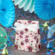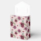Se muestra la caja favorita de la fiesta en una hermosa impresión de rosas con un arco de cinta blanca. Personalizar este artículo o compra tal cual. Imprimir material freepik.com