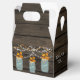 Barnwood rústica, colgando luces de cuerdas con hojas caídas en cajas de favores de bodas de tarro de albañil. También están disponibles productos de correspondencia