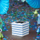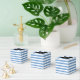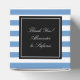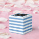 Cajas favoritas de boda personalizadas | patrón de rayas azules y blancas. Buena idea de regalo para los huéspedes. Color de fondo personalizado con líneas blancas. Personalizado: mensaje de agradecimiento con el nombre de la novia y el novio en la parte superior. Pequeña caja para dulces y pequeñas trinchetas. Elegante impresión para un boda elegante.