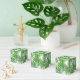 Patrón de hojas de palmera tropical verde limón brillante impreso en una caja de favores cuadrada perfecta para un boda de la isla o de la playa, ducha de novia, ducha de bebé o fiesta de cumpleaños. Haga clic en PERSONALIZAR MÁS AÚN para cambiar el color de fondo o agregar texto.