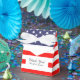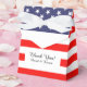 Caja de favores de la fiesta de bodas con bandera estadounidense patriótica con texto personalizado agradeciendo a amigos o invitados. Crea tu propio mensaje de agradecimiento de personalizado de novia y novio. Bandera estadounidense con elegante arco de cinta blanca. El diseño del orgullo de EE.UU. con estrellas y rayas blancas y azules rojas. También agradable para el 4 de julio fiesta, celebración de cumpleaños, ducha de bebé, graduación, reunión, ducha de novia, etc.