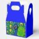 Caja de favores colorida con temática de pavo real para los huéspedes fiestas.