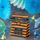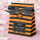 Rayas personalizados negras y naranjas Feliz caja de carpas fiesta de Halloween con pequeño arco negro. Idea de regalo personalizada para los clientes en fiestas de disfraces, cumpleaños, ducha de bebé, boda, truco o tratamiento, etc. Divertido diseño de franjas audaces con el logo de la cabeza de calabaza tallada en jackolantern. Cambiar la cantidad para obtener el precio de descuento a granel barato. Suministros y accesorios de fiesta DIY para adultos y niños. Calabaza de calabaza de linterna tallada en la cara.