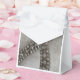 Un suave fondo de piel falsa con elegante collar de diamantes acentúa esta caja de favores, perfecta para bodas, aniversarios o eventos de ducha de novias.