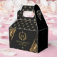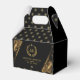 Diseño elegante, sencillo y monogramado de la etiqueta del vino. Leyenda de laurel de oro con un monograma de personalizable. El negro y el oro destellan el fondo festivo.