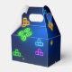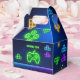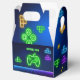 Juego en neon green, caja de regalo de videojugador amarillo azul, suministros fiestas únicos.