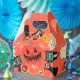 Es el diseño de la fiesta de halloween celebrando la próxima Halloween. Este kawaii dibujado a mano y ilustracion divertido incluye personajes de halloween, vampiros, calabaza, Frankenstein, pañuelo lúgubre, lobo, esqueleto, fantasma y calabaza.