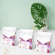 Las orquídeas proporcionan un fondo ornamental para esta caja de favores matrimoniales. Ideal para eventos de clima cálido, bodas, aniversarios, al aire libre, en el interior. Se utiliza para complementar los temas de eventos de boda floral, incluyendo temas tropicales. Añade fácilmente tus detalles. Utilice la plantilla para personalizar.