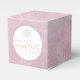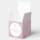 Añade un toque dulce y nevado a tu ducha de bebé con estas cajas de favores color rosa del invierno maravilloso. Con un suave fondo rosa con delicados acentos de copos de nieve y un guión dorado que dice "Nuestro pequeño copo de nieve está en camino", son perfectos para empacar pequeños dulces o favores de fiesta. Personaliza tu fecha para que sea extra especial.