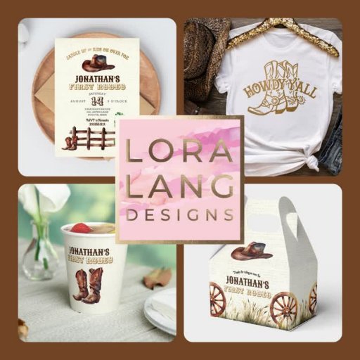 Burlap Faux Gold First Rodeo Birthday CollectionDiseñado por Lora Langowski