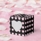 Corazones rosados contra un fondo negro adornan esta encantadora caja de favores. Una excelente manera de celebrar el amor.