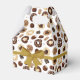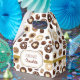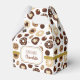 Caja para regalos decorada con un patrón de caramelos, galletas y otros dulces de chocolate. El diseño contiene una etiqueta con texto que podrás personalizar a tu gusto, y un lazo de color dorado que rodea la caja para darle un toque de elegancia. Ideal para regalos personales o negocios de repostería.