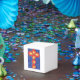 Un motivo de cruz en una caja de regalo de cubo