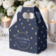 Cajas de regalos azul marino con patrón de puntos dorados Glam Chic para boda, despedida de soltera, cena de ensayo, cena de parejas. Utilice la opción personalizar esta plantilla para cambiar el texto | Utilice la opción personalizar más para cambiar el estilo, tamaño y color del texto si es necesario. Si no necesita texto, elimínelo.
