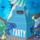 Esta caja de fiesta tropical muestra una rana de dardo con veneno azul