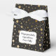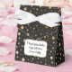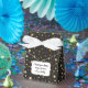 Fondo negro y falso Relieve metalizado estrellas doradas caja de regalos para un fiesta mágico. Ideal para fiestas mágicos, fiestas de Harry Potter o fiestas de cumpleaños con temática de mago.
