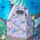 La caja de favor de fiesta se muestra con una hermosa impresión floral de hortensias.