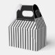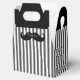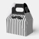 Elegante caja de regalo de los padrinos hecha con un patrón rayado gris y blanco, con mangos negros. Gráficos de un bigote negro, en el frente, tiene texto blanco leyendo Gracias. Estupenda caja de regalo para ese pequeño y especial regalo de agradecimiento a tu mejor hombre y padrinos. Estupenda caja de regalo para nuestros frascos de 6 onzas.