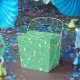 Festividad / temática de Navidades / cajas de favores. Ideal para compartir productos horneados de vacaciones. Presenta un diseño de rociadores multicolores festivos (¡incluso árboles pequeños!) sobre un fondo verde.