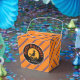 Suministros de fiesta perfectos para Halloween - este contenedor de rayas naranjas y violetas es ideal para los tratamientos de la fiesta de Halloween.