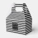 Esta caja de favores a rayas es de blanco y negro. Personalice la caja de favores con el texto deseado, como el nombre de la novia y del novio o la fecha del boda.