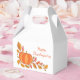 Caja de favores de la fiesta de estilo gable mostrada en blanco con una tierna tirita de calabaza de acción de gracias. Personalizar este artículo o compra tal cual. Sugerencia: Añadir una cinta de bonito.
