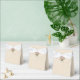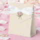 Caja de favores de Baby Shower de época con un Bud rosa rosado sobre fondo de cartón beige de color beige.