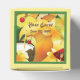 Diseño gráfico de comida de actualidad y bebidas de coco Fiesta de Luau de Hawái por la artista/diseñadora Charmaine Paulson en una caja de favores de fiesta. El cuadro de favor tiene plantillas de texto para su personalización. ©2014charmainepaulson