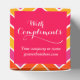 Dé un catador profesionalmente a los clientes con este brillante estilo de chevron rosa, rojo, naranja, amarillo y blanco con obsequio o caja de regalo. Ideal para regalos corporativos para clientes o empleados. También se puede usar para promociones o clientes nuevos leales o potenciales rellenados con sus muestras de comida. Personalizar con sus empresas contacte con los detalles. En la actualidad se puede leer con elogios las delicias de la pastelería seguidas de un número de teléfono o de su sitio web. Diseñado por Sarah Trett.