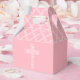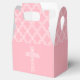 Una cruz blanca de tejido abierto sobre un fondo bebe rosado - CAMBIO A CUALQUIER COLOR - y un diseño de quatrefoil en la parte superior, estas cajas favoritas son ideales para la celebración de la cristalización, bautismo, dedicación o primera comunión de su hijo. Personalice con el nombre de su hijo y otros detalles en la parte posterior. Disponible en varios tonos rosados y muchos otros colores o utilice nuestra herramienta de selección de colores para cambiar a su color perfecto. Vea las invitaciones coincidentes en todos los demás colores prefabricados. —> http://bit.ly/2GSK0No <—