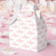 Una caja de favores de tiburón que muestra un tiburón rosado en un patrón repetido en un fondo blanco. Cute Shark Pink White Favor Box Diseño de vacaciones | ©Melissa Patton - Artista/Ilustrador