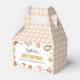 Envíe a sus invitados a casa con un dulce regalo en el desayuno Brunch First Birthday Favor Box! Diseñado con ilustraciones de temática lúdica como gofres, huevos y bacon, esta caja es perfecta para empacar pequeñas golosinas o tentempiés. Con su diseño alegre y su robusta construcción, es una manera encantadora de agradecer a los huéspedes por unirse a su pequeño día especial. Llénalo con divertidos favores de fiesta y deja que tus invitados se lleven a casa un pedazo de la celebración!