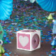 Un burro que hace agua la boca, lleno de deliciosa dulzura, cubierto de glaseado rosado (escarcha) y numerosas salpicaduras de colores